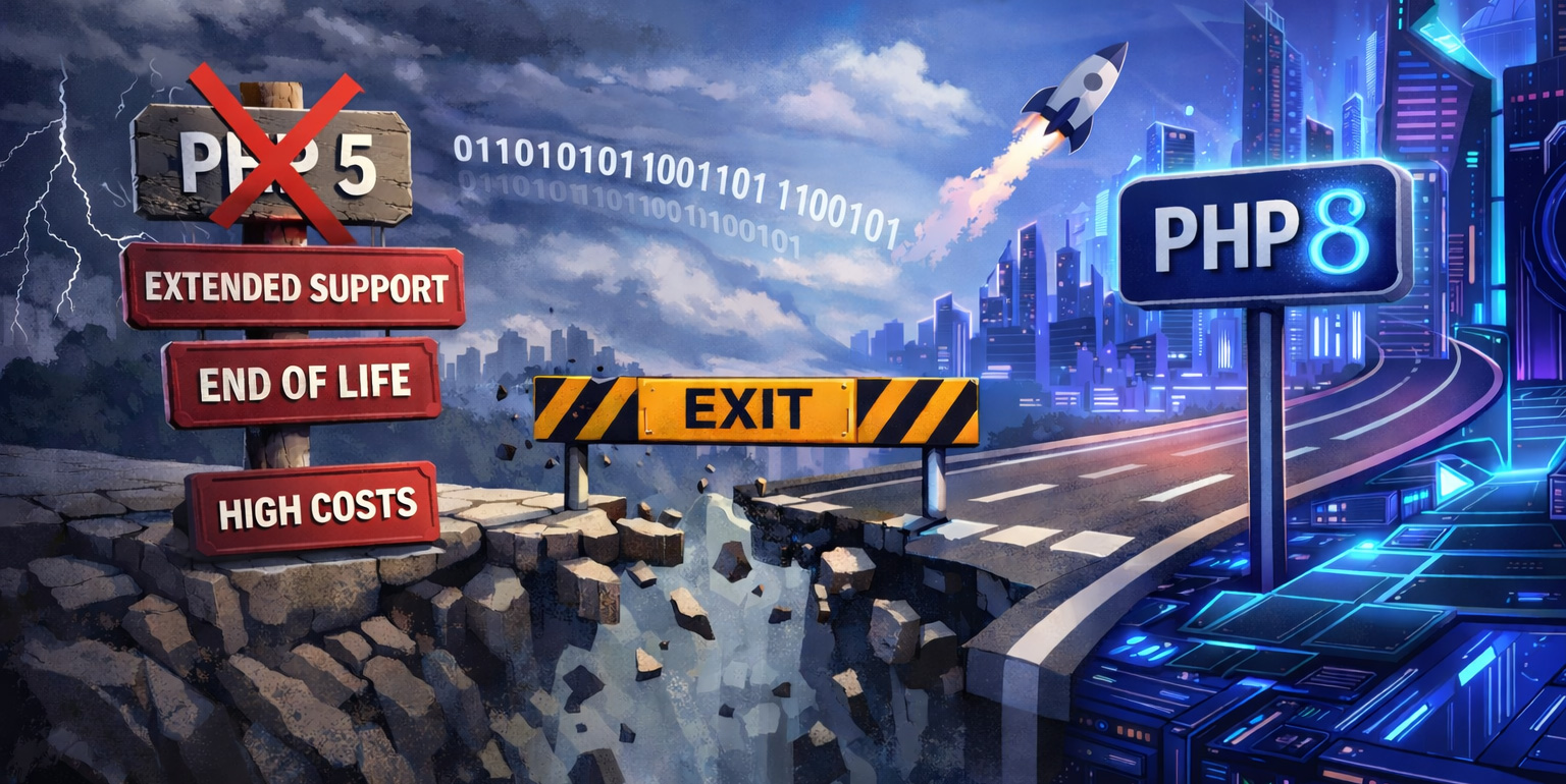 Viele Unternehmenswebsites laufen technisch noch auf PHP 5 oder älteren PHP 7-Versionen, die von den Hostern nur noch über kostenpflichtigen Extended Support bereitgestellt werden. Das verursacht laufende Mehrkosten und birgt zugleich erhebliche Sicherheitsrisiken.